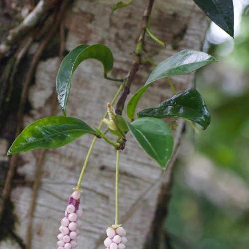 Anthurium scandens (Aubl.) Engl.의 분류학적 학명은 다음과 같습니다. - 계: Plantae, 문: Tracheophyta, 강: Liliopsida, 목: Alismatales, 과: Araceae, 속: Anthurium, 종: Anthurium scandens